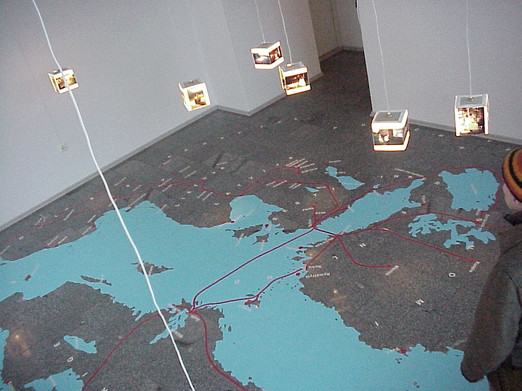 The map on the floor is on the Baltic Sea with its surroundings, as a mirror image.