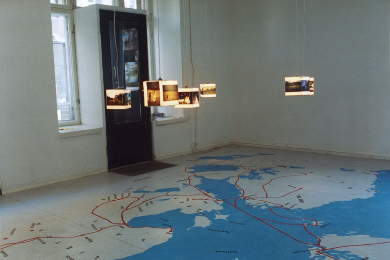 On the left Lithuania, on the right Gudö and Stockholm in Sweden. Back in the corner the Lake Ääninen (Onega). The small, red route triangle in the sea is between Tallinn on the Estonian coast on the left, and Helsinki on the Finnish coast on the right.